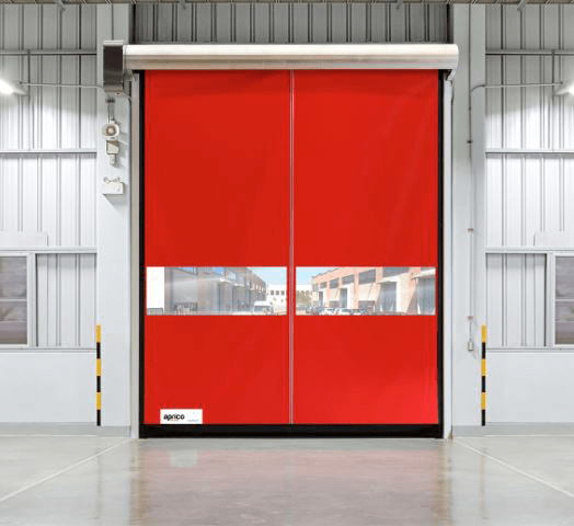 Al delirio (lavoro) abbiamo una porta simile a questa , si arrotolano schiacciando un bottone o tirando una corda, poi passati scendono giù da sole, c’è un sensore che sente se c’è la presenza di qualcuno e se sta scendendo e qualcuno passa sotto si blocca e torna su.
