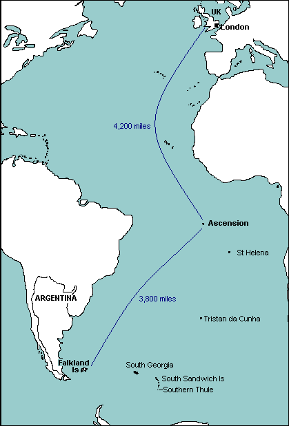Noterete dove stanno le isole Falkland, si sono quelle vicine alla punta dall’Argentina e molto e molto e molto e molto e ancora di più lontano dall’Inghilterra , tanto per essere precisi 12 mila chilometri. Di chi sono ?