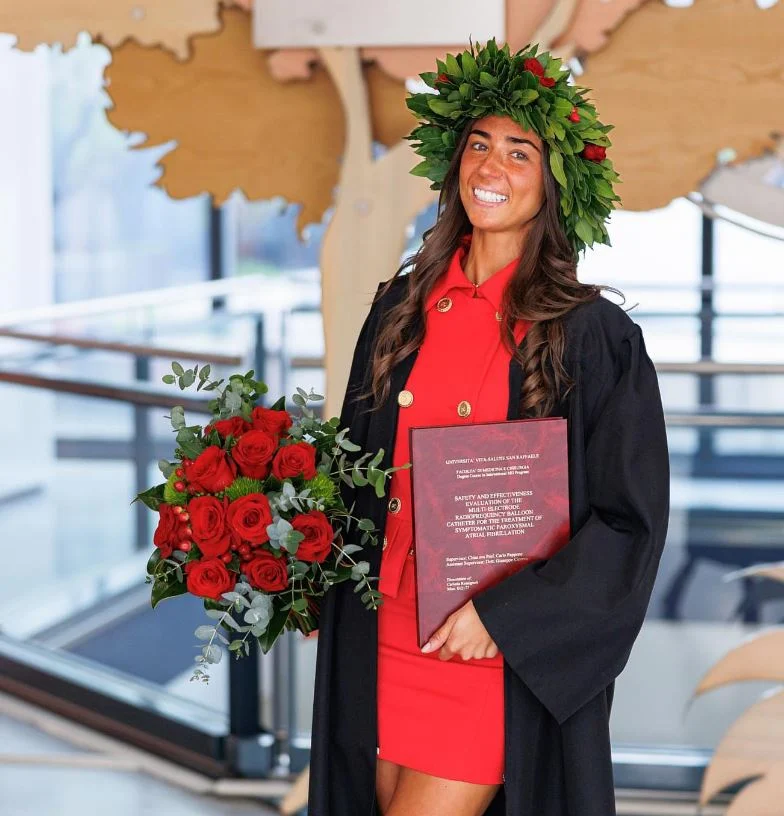 A 23 anni con un anno d’anticipo si è laureata in medicina con 110 con menzione di lode al san Raffaele a Milano dove la retta è di 20 mila euro l’anno.