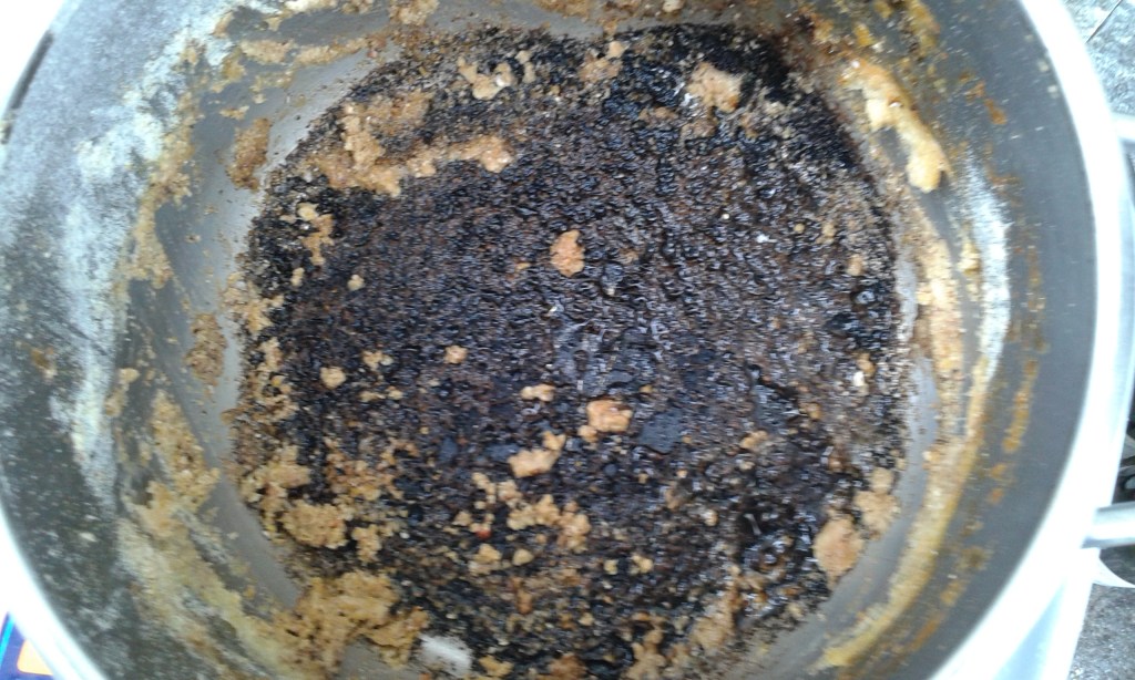 L’ennesima pentola bruciata ieri era fuori sul marciapiede , era d’aggiungere al pastone per le galline secondo l’dea di suocera.