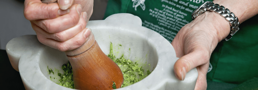 Il cuoco che fa il pesto a mano in un ristorante lo voglio proprio vedere….