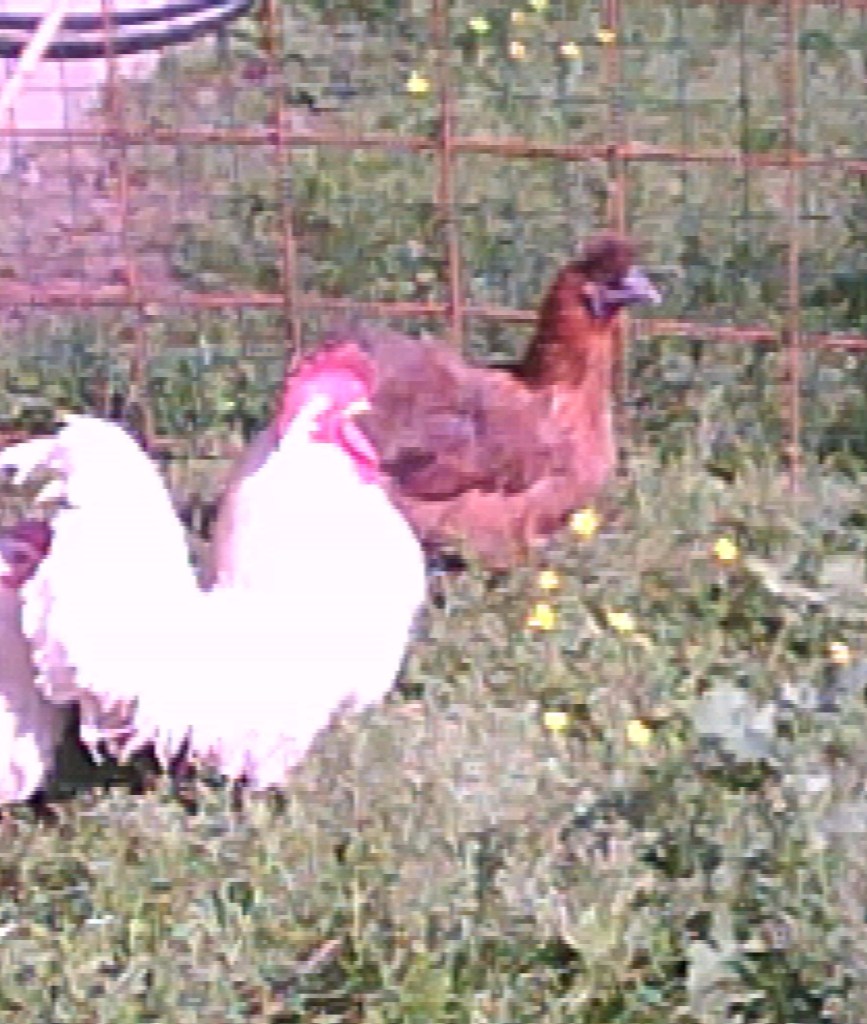 Le mie galline le vanno a salutare e il gallo le guarda con cupidigia, ora che veniva il momento per saltarle addosso è rinchiuso. Vero che ha le sue galline, ma le mie sono un’altra cosa, quelle sono gallinelle, piccole e poco attraenti.