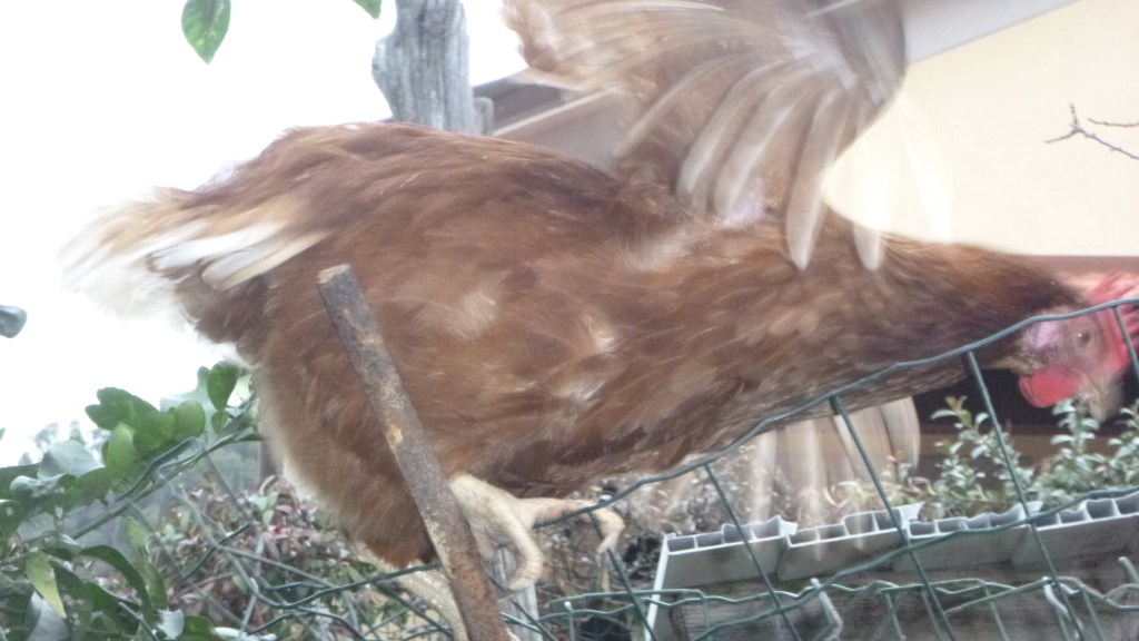 Alcatraz che si stava riprendendo dallo spavento, la frenata dell’auto a pochi centimetri da lei l’aveva scossa, ha guardato male Guardacomeseigrasso ma non ha risposto nulla ed è entrata nella parte in muratura del pollaio a riflettere.